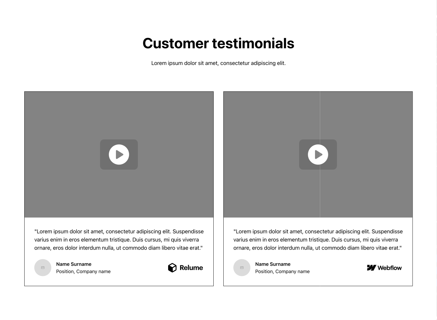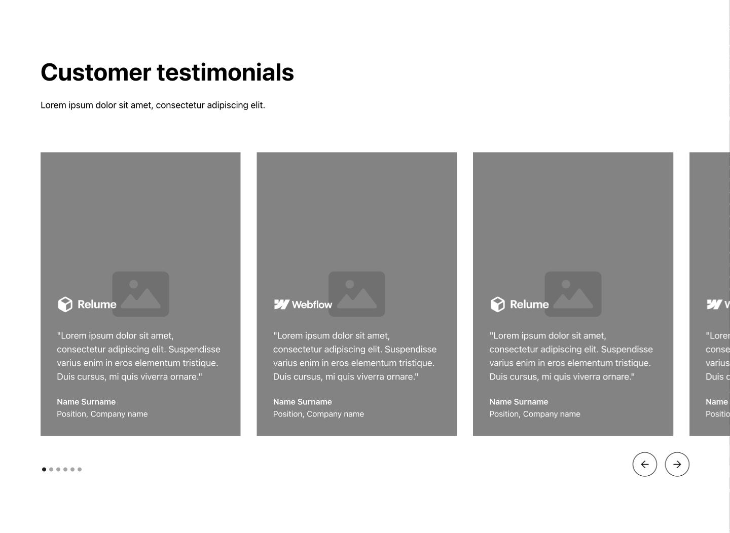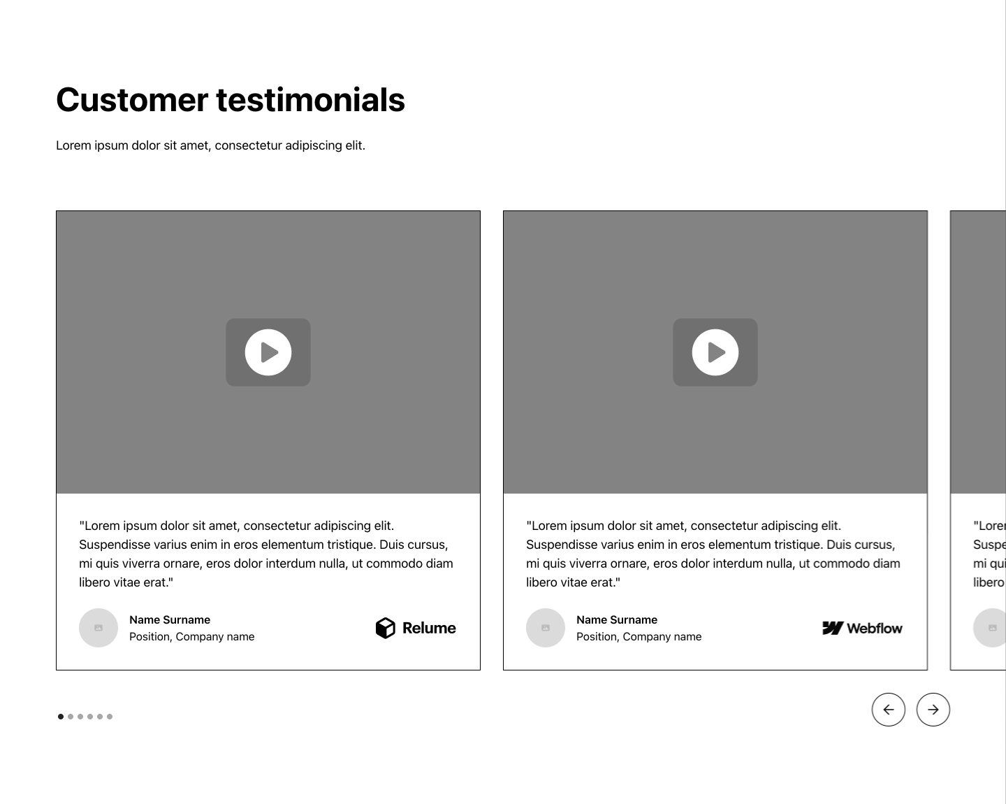 Have any requests or suggestions that would make Relume Library more useful for you? Join our Slack community and share them to the channel #component-requests.