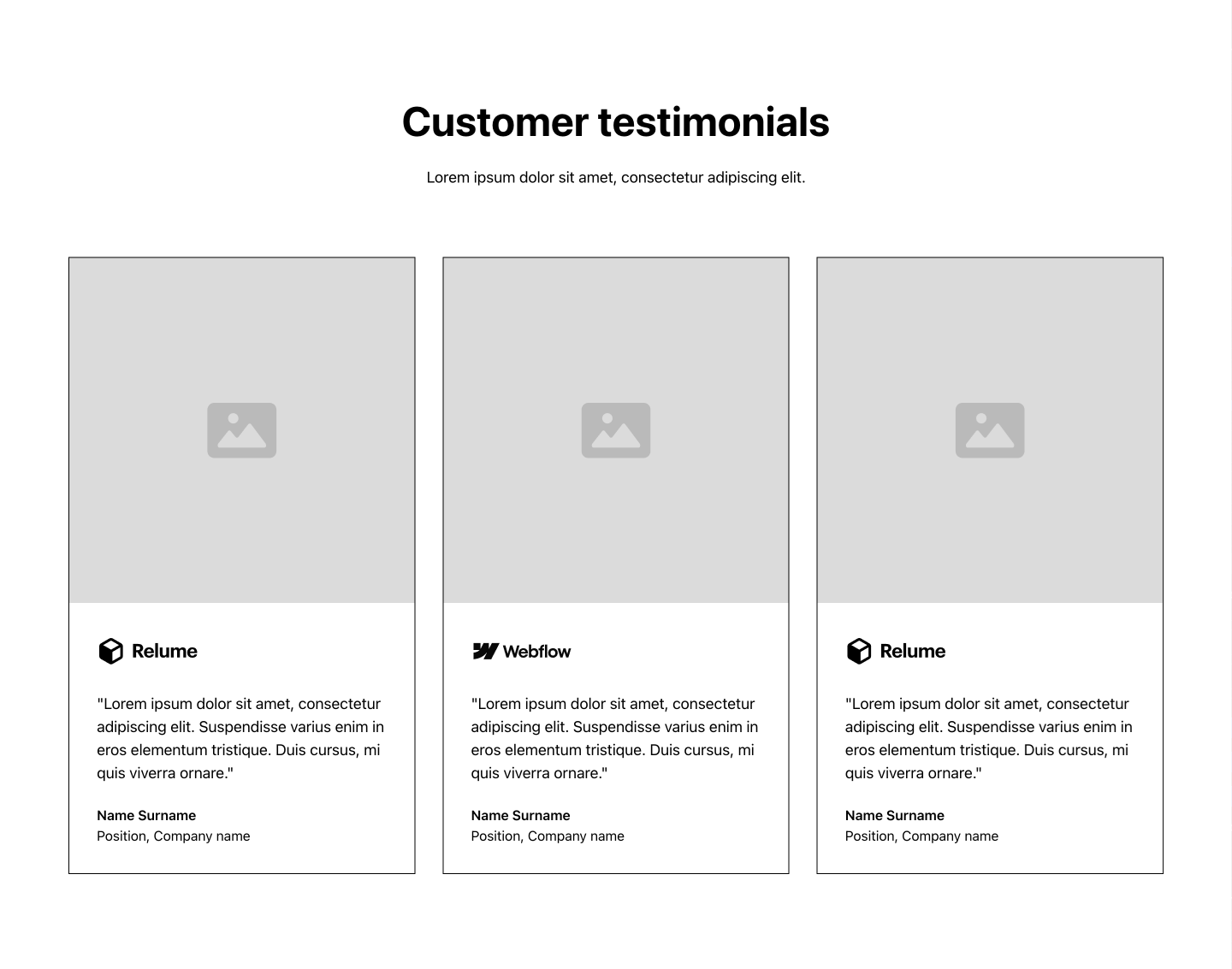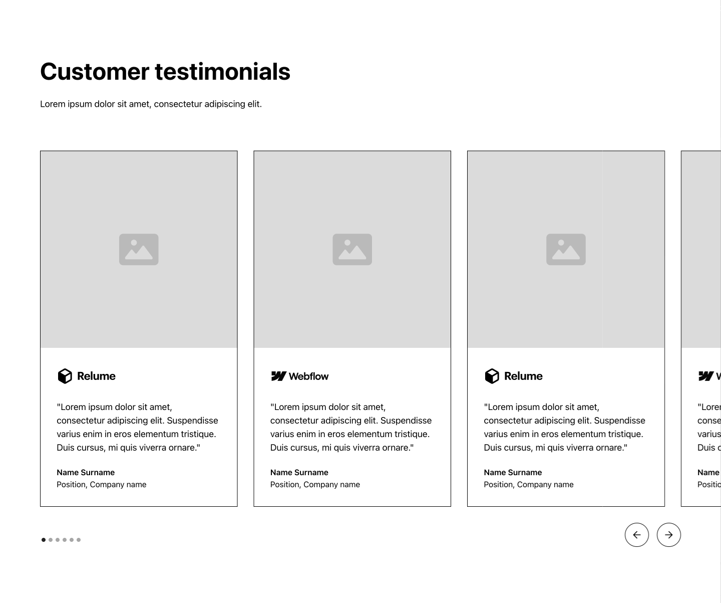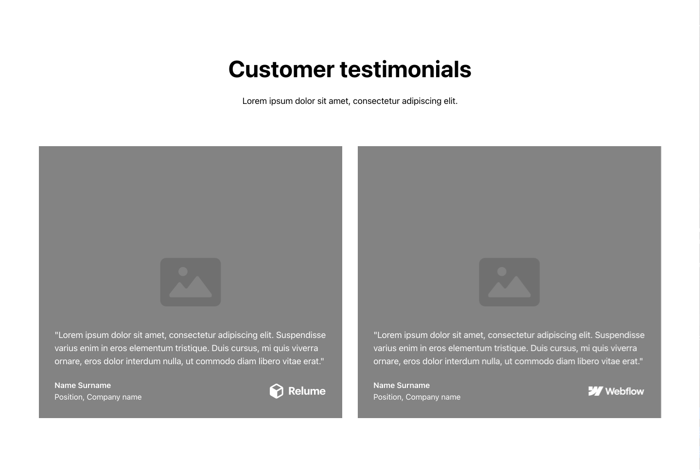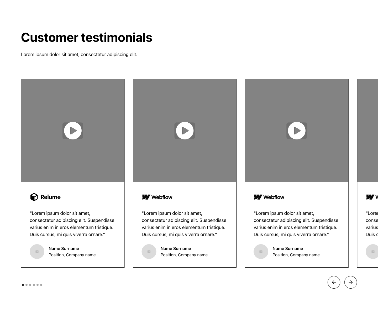 Have any requests or suggestions that would make Relume Library more useful for you? Join our Slack community and share them to the channel #component-requests.